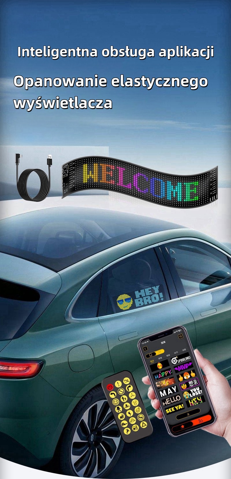Flexibilní LED obrazovka uvnitř vozu kombinuje chytrou technologii s personalizací a posouvá zážitek z jízdy na zcela novou úroveň. Využívá vysoce kvalitní LED diody a flexibilní obrazovku pro zajištění hladkých a jasných světelných efektů. Dá se libovolně ohýbat, takže se dokáže přizpůsobit různým prostorům v autě a snadno se instaluje.